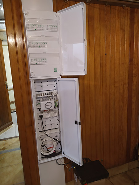 Photographie d’un tableau électrique récent, installé avec rigueur et dans le respect total des normes françaises NF C 15-100. Ce type d’installation garantit la sécurité des circuits, une meilleure gestion des lignes électriques et une maintenance facilitée. Exemple de réalisation soignée pour une installation résidentielle.
